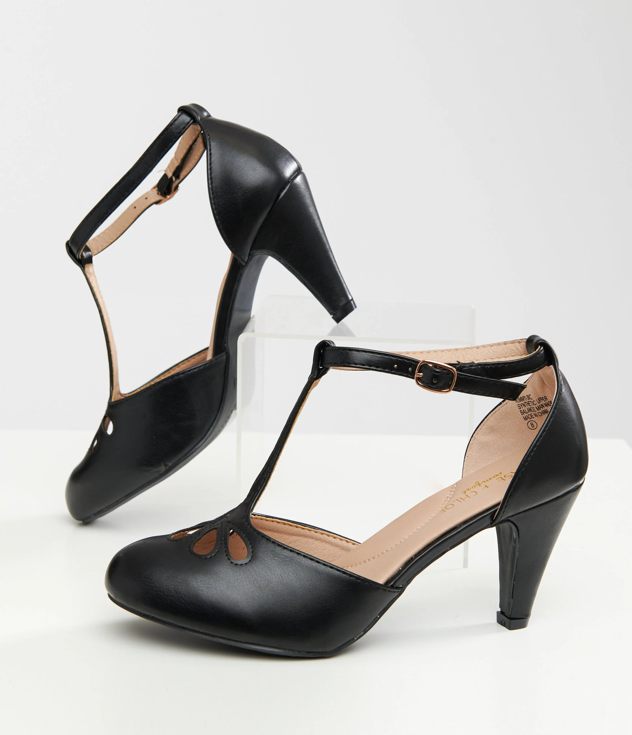 With their classic black color and intricate cutouts on the vamp, these 1920s heels are sure to turn heads wherever you go. The gored t-strap adds a touch of elegance and charm, making them the perfect addition to any vintage-inspired outfit. Complete with a 3.5" heel.