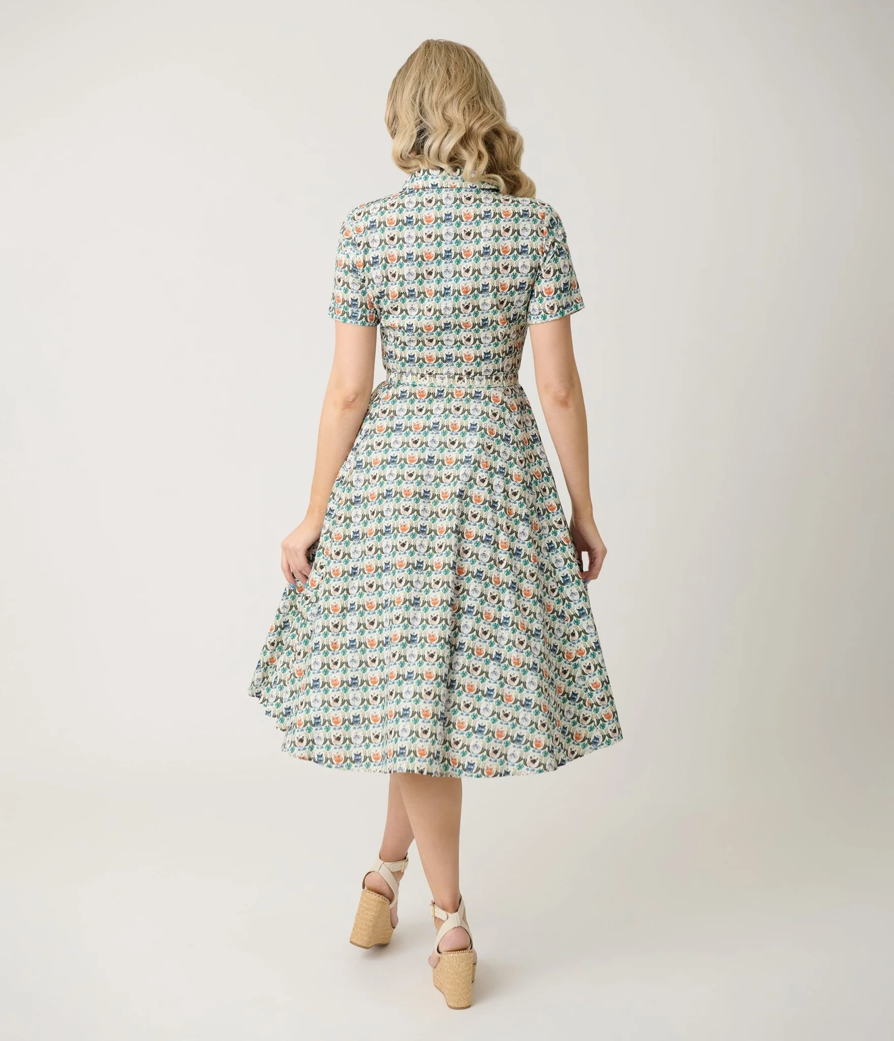 This charming swing dress features an enchanting multicolor cat print that dances across the fabric, perfect for brightening up any occasion. With a flattering swing silhouette and a matching belt to cinch your waist, you’ll feel both confident and comfortable all day long. The thoughtful front button-up design adds a touch of whimsy, while side pockets keep your essentials close at hand. Crinoline added for volume, sold separately. Available in sizes XS-4X while supplies last.
